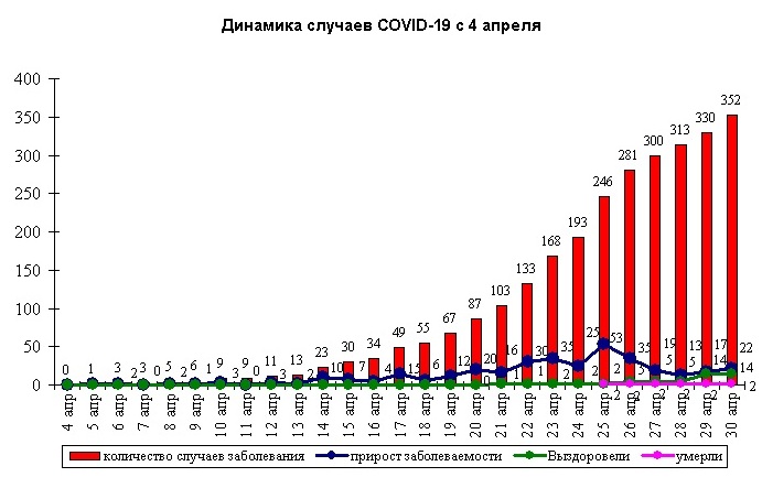 По состоянию на 10:00 30.04.2020 в Карачаево-Черкесии подтверждено 22 новых случая COVID-19. Выздоровели от COVID-19 14 человек. Всего в КЧР подтверждено 352 случая заражения новым коронавирусом, в инфекционных стационарах находятся 100 из них с лабораторно подтвержденным диагнозом, три пациента подключены к аппарату ИВЛ. Остальные инфицированные новым коронавирусом (72%) находятся под медицинским наблюдением на дому, так как они чувствуют себя удовлетворительно и получают необходимое лечение.