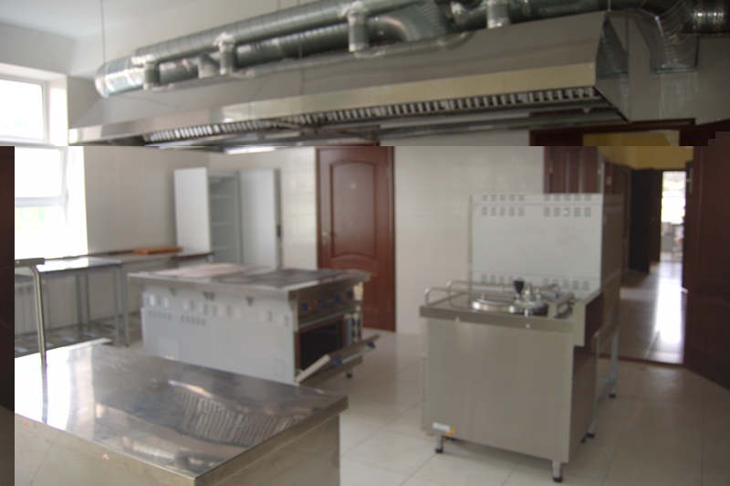 Внутри здания школы на 1-ом этаже предусмотрены большой конференц-зал на 445 мест, спортивный зал, гимнастический зал, гардероб для хранения верхней одежды, медицинский блок, состоящий из 3-х кабинетов, оборудованный в соответствии с санитарно-эпидемиологическими требованиями к организациям, осуществляющим медицинскую деятельность, библиотека и читальный зал на 40 мест, пищеблок, обеденный зал на 306 мест. В обеденном зале оборудованы 20 умывальников. Системы хозяйственно-питьевого холодного и горячего водоснабжения, канализации, вентиляции и отопления оборудованы в соответствии с санитарно-эпидемиологическими требованиями, предъявляемыми к организациям общественного питания. Туалеты для мальчиков и девочек размещены на каждом этаже, оборудованы кабинами с дверями. Для персонала выделены отдельные санузлы.