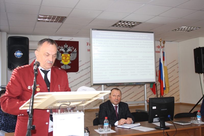 С докладом по теме выступил руководитель Управления Бескакотов С.В. Главный врач Батчаев Х.Х. представил анализ деятельности ФБУЗ «Центр гигиены и эпидемиологии в Карачаево-Черкесской Республике» за период 2016 года.