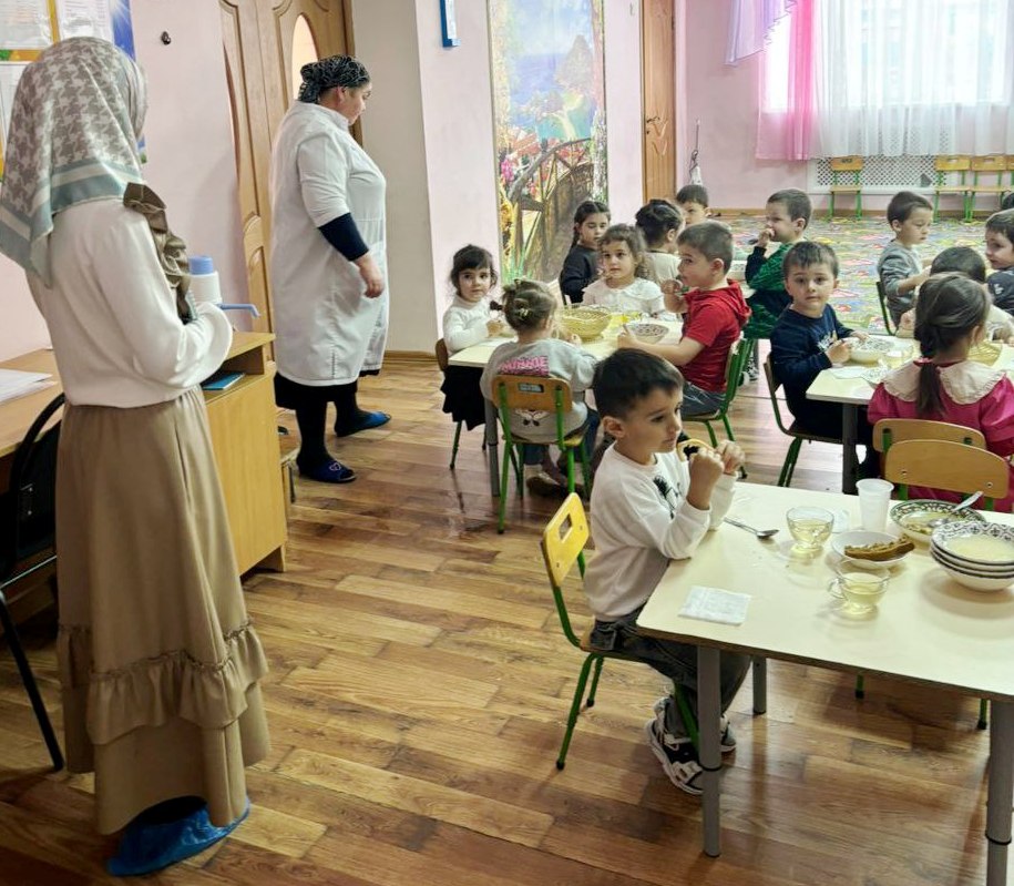 С персоналом детского сада и воспитанниками проведена беседа о принципах здорового питания.