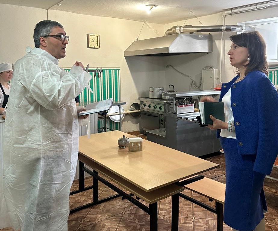 В ходе профилактического визита осмотрены все помещения школы, в том числе - пищеблок. Изучены условия хранения пищевых продуктов, ведение обязательной специальной документации (меню-раскладка, технологические карты, журналы здоровья и др.), проведение отбора суточных проб готовых блюд.