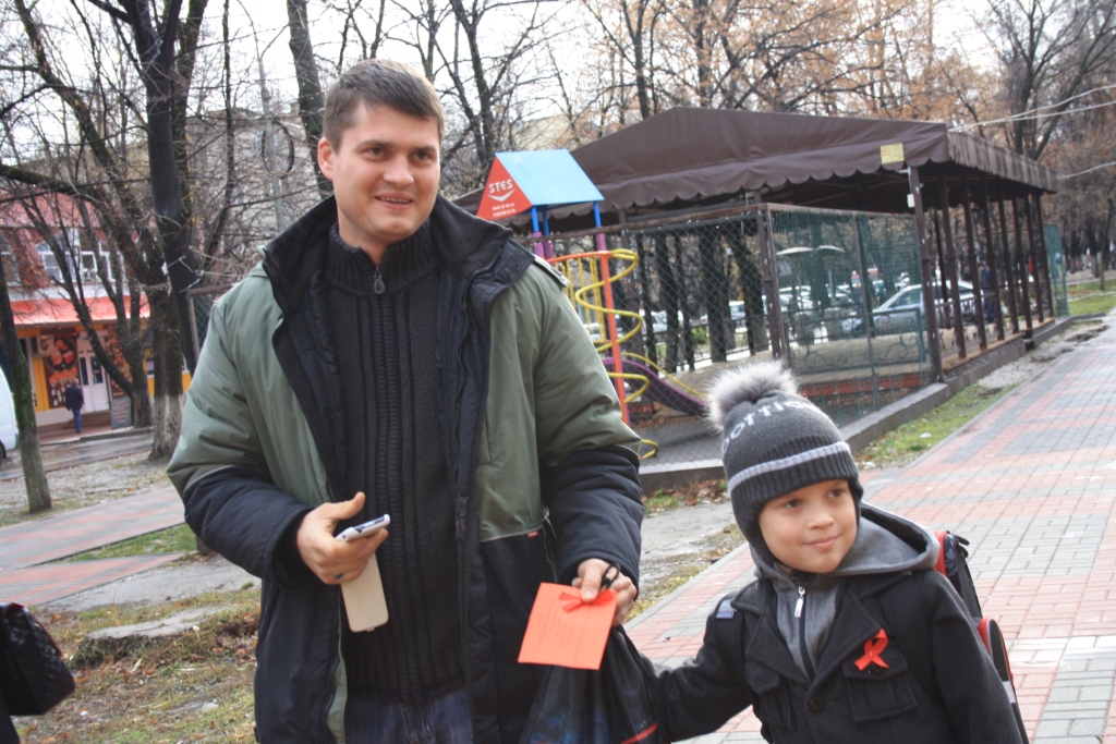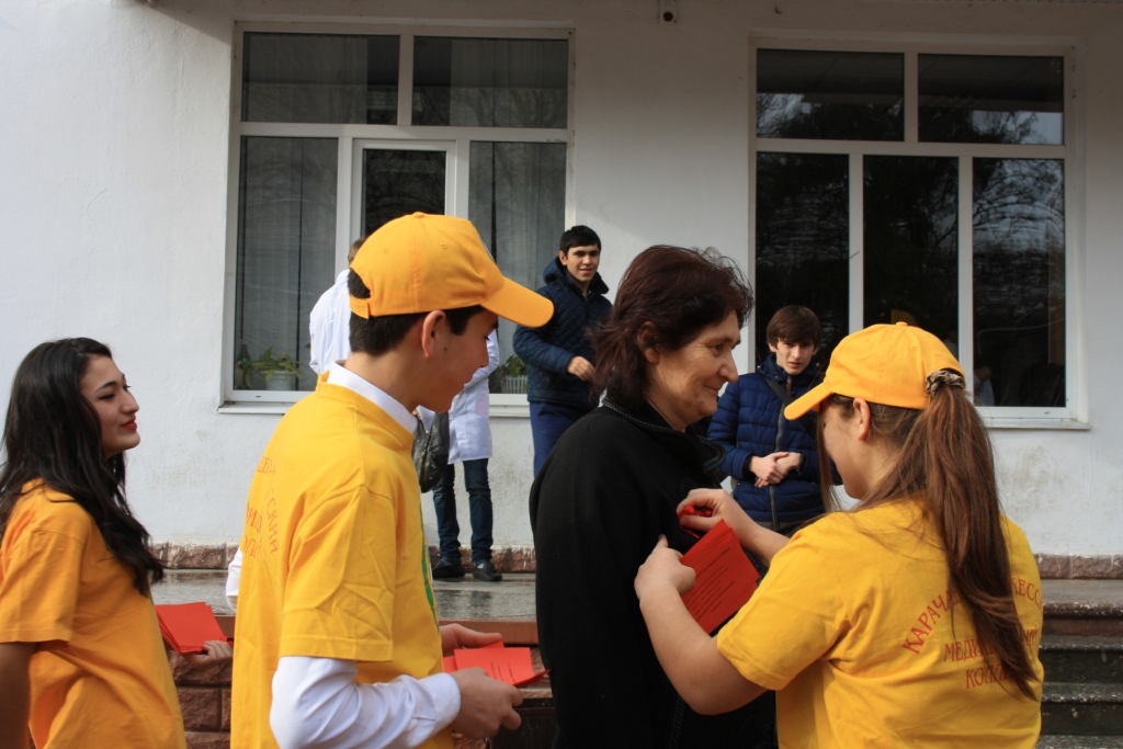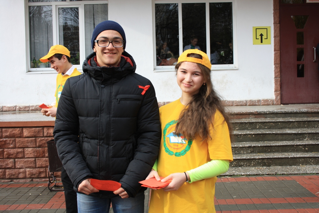 Все участники акции,  в знак осознания людьми важности проблемы СПИДа, прикрепили к груди красные ленточки - символ борьбы со СПИДом.  Группа студентов-волонтеров раздавала красные ленточки на улицах города Черкесска, призывая население поддержать движение молодежи в борьбе с ВИЧ-инфекцией. Волонтеры – учащиеся медицинского колледжа и студенты техникума КЧГТА  объясняли горожанам актуальность профилактики заражения ВИЧ-инфекцией, раздавали информационные листки о проведении Дня открытых дверей в  Центре по профилактике и борьбе со СПИДом и инфекционными заболеваниями в КЧР.