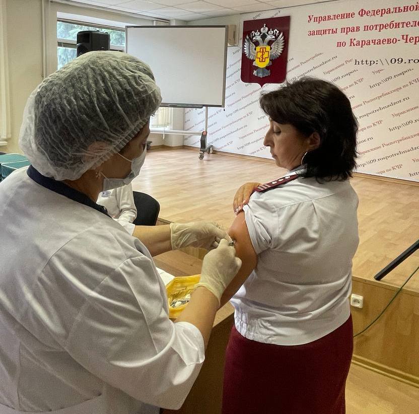 Сегодня сотрудники Управления Роспотребнадзора по КЧР и Центра гигиены и эпидемиологии в КЧР получили прививки против гриппа.