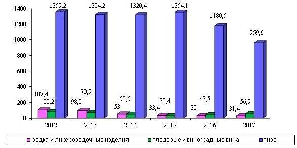 Потребление алкогольной продукции населением КЧР за период с 2012 по 2017 годы.