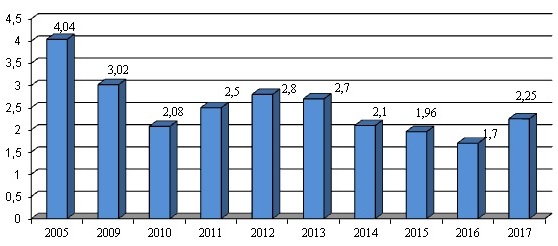 Как видно из представленных выше таблицы и диаграммы фактическое потребление крепких спиртных напитков населением республики стабилизировалось и имеет тенденцию к снижению потребления крепких спиртных напитков.