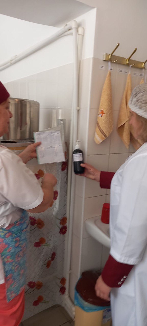 В ходе профилактического визита сотрудники Управления Роспотребнадзора по КЧР убедились, что предъявляемые ранее, в ходе контрольно-надзорной деятельности, замечания и нарушения исправлены. Вся посуда для приготовления блюд на пищеблоке заменена на нержавеющую, приготовление блюд осуществляется по технологическим картам. Складские помещения оборудованы приборами для контроля условий хранения пищевых продуктов и сырья - психрометрами. Заполняется необходимая документация и проводится термометрия готовых блюд, для чего приобретен специальный термометр. В групповых помещениях установлены рециркуляторы воздуха.
