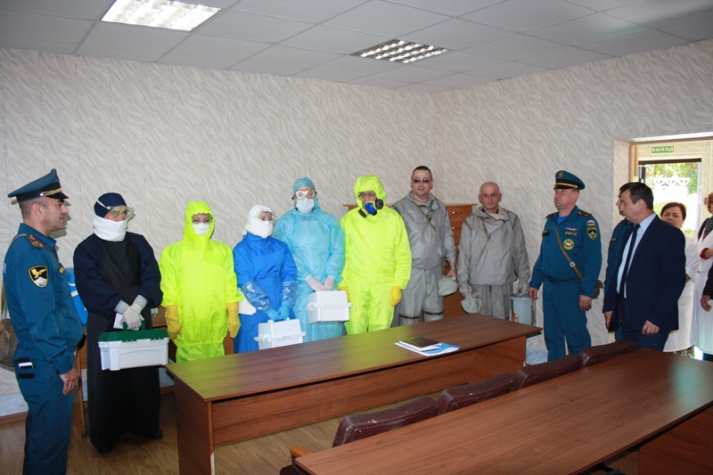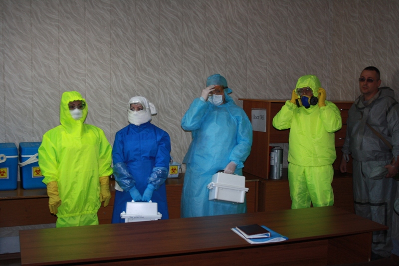 В первый день штабной тренировки 1 октября 2019 г. представители пяти лабораторий вышеуказанных учреждений по прибытии на базу ФБУЗ «Центр гигиены и эпидемиологии в Карачаево-Черкесской Республике» в специальных костюмах с укладками получили пробы с заданиями на определение бактериального и химического заражения.