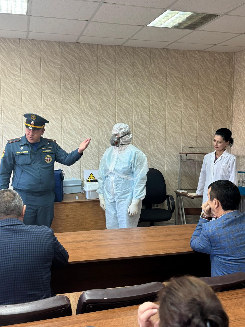 На базе ФБУЗ «Центр гигиены и эпидемиологии в Карачаево-Черкесской Республике» с участием специалистов Управления Роспотребнадзора по КЧР и Главного Управления МЧС России по КЧР проведена специальная тренировка с учреждениями входящими в сеть наблюдения и лабораторного контроля гражданской обороны Карачаево-Черкесской Республики (СНЛК по КЧР) по теме: «Обнаружение и обозначение районов, подвергшихся радиоактивному, химическому, биологическому заражению».