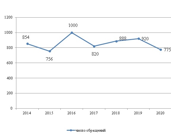 Динамика количества обращений граждан в Общественную приемную Управления Роспотребнадзора по КЧР за 2014-2020гг
