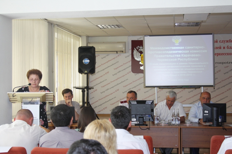 В докладе начальника отдела эпидемиологического надзора Управления Роспотребнадзора по КЧР К.Х.Болатчиева проведен анализ показателей охвата населения прививками за последние 10 лет, который показал, что по отдельным заболеваниям охват иммунизацией снизился, в том числе и  в результате отказов населения (от 0,5 до 1%). Кроме того, в докладе приводились данные исследований  напряженности иммунитета, которые говорят о наличии жителей республики, получивших прививку, но не имеющих впоследствии  напряженного иммунитета к данному заболеванию. Озвучены данные серомониторинга кори, эпидемического паратита, полиомиелита, вирусных гепатитов А и В, и др. заболеваний, управляемых посредством вакцинопрофилактики, поведенного Роспотребнадзором.  А также выделены возможные причины неудовлетворительного состояния коллективного иммунитета в отдельных возрастных группах населения во всех муниципальных районах республики.