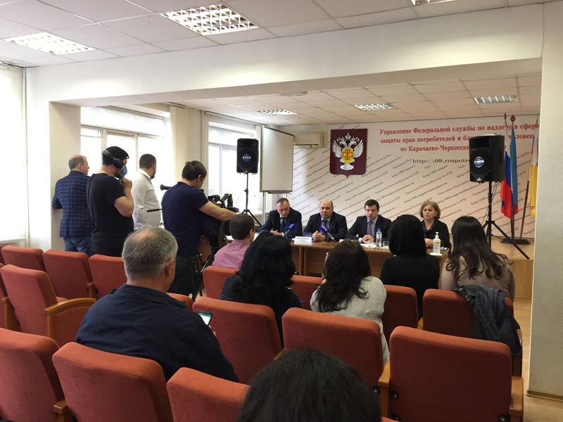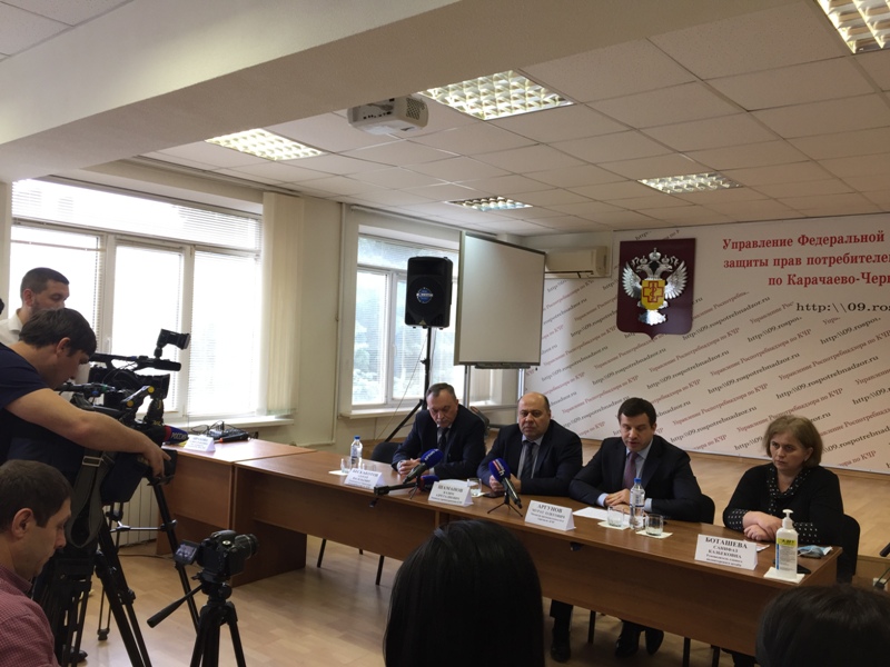 30 марта в Управлении Роспотребнадзора по КЧР прошел брифинг с участием Главного государственного санитарного врача по КЧР С.В.Бескакотова, Министра здравоохранения КЧР К.А.Шаманова, Министра промышленности и торговли КЧР М,О.Аргунова и руководителя Волонтерского штаба по координации помощи пожилым и малообеспеченным гражданам в условиях угрозы распространения короновируса С.К.Боташевой. Республиканские СМИ проинформированы о текущей санитарно-эпидемиологической ситуации в КЧР, об особенностях работы больниц и поликлиник в текущее время и их подготовке к возможному ухудшению эпидситуации, о лабораторном тестировании населения на коронавирусную инфекцию, о том как действовать и куда нужно обращаться при подозрении на заболевание. Журналистами были заданы много других вопросов, касающихся комплекса проводимых в Карачаево-Черкесии противоэпидемических мероприятий.