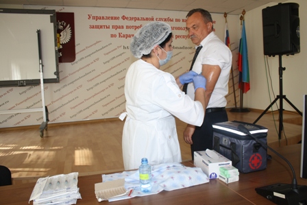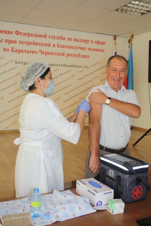 11 сентября рабочий день специалистов управления Роспотребнадзора по КЧР начался с заботы о собственном здоровье: подавляющее большинство нашего коллектива получили прививки против гриппа. В республике в начале сентября стартовала и уже идет полным ходом иммунизация населения  к эпидсезону 2017-2018 гг.